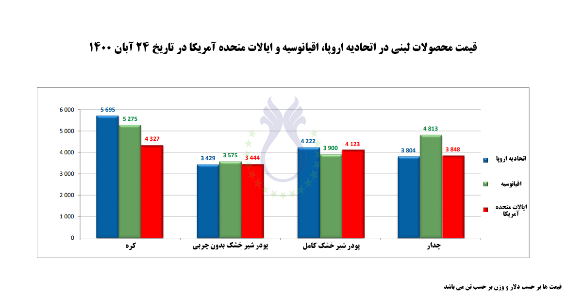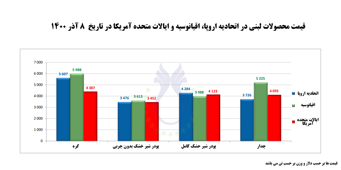 قیمت ها برحسب دلار و وزن بر حسب تن میباشد.