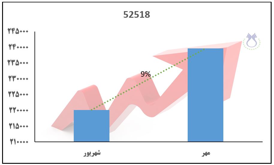 تغییرات قیمت محصولات پتروشیمی با نام پلی اتیلن سنگین تزریقی و شناسه 52518 از قیمت 211046 به 239602 ریال در بازه زمانی ابتدای شهریور ماه تا انتهای مهر 1400