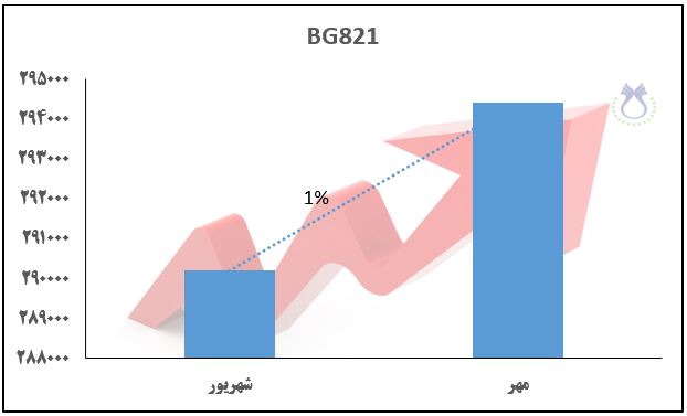 تغییرات قیمت محصولات پتروشیمی با نام پلی اتیلن ترفتالات بطری و شناسه BG821 از قیمت 290188 به 294398 ریال در بازه زمانی ابتدای شهریور ماه تا انتهای مهر 1400