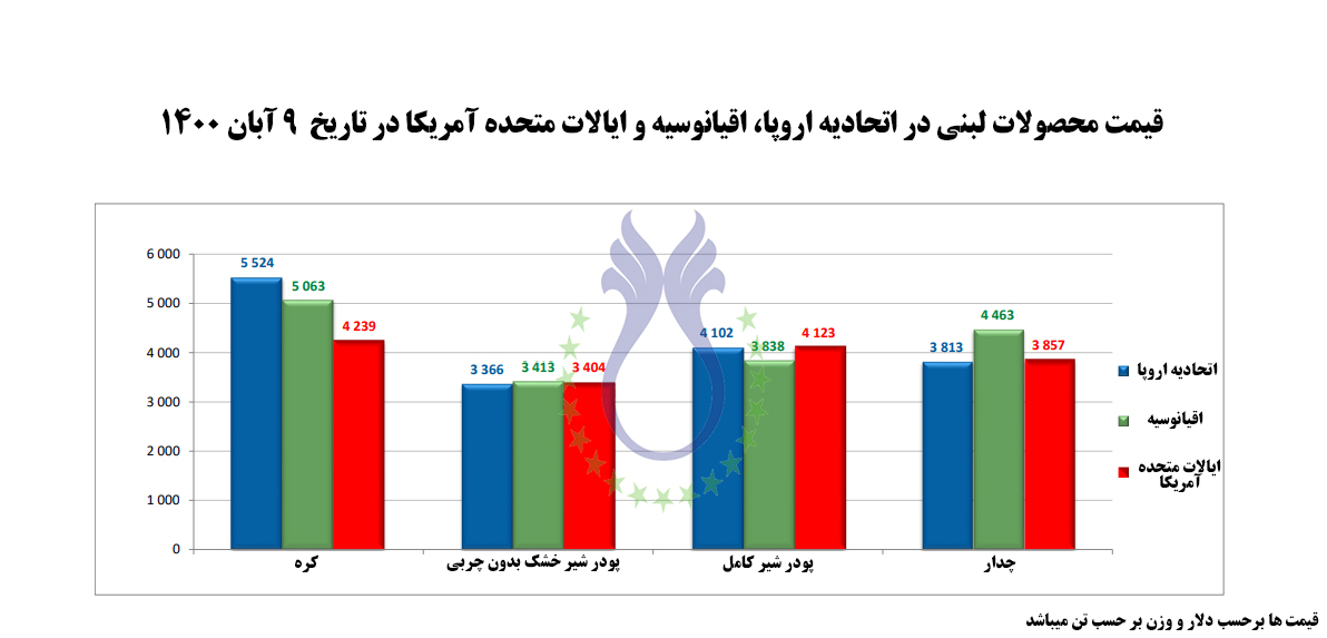قیمت ها برحسب دلار و وزن بر حسب تن میباشد.