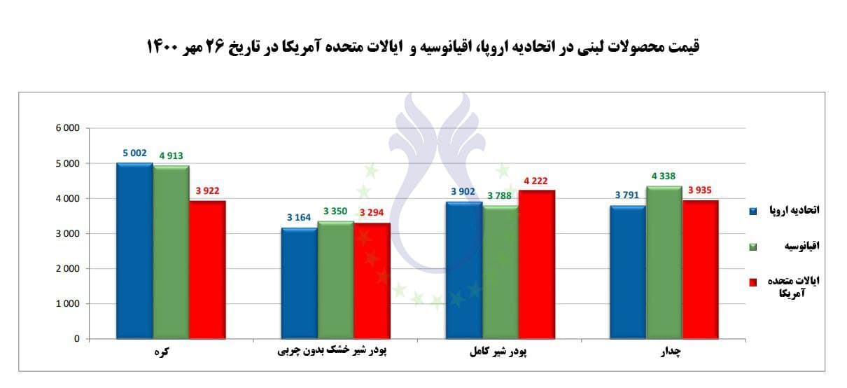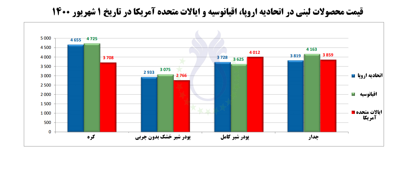 قیمت محصولات لبنی در اتحادیه اروپا، اقیانوسیه و ایالات متحده آمریکا در تاریخ 29 شهریور 1400 تحولات بازار 04 مهر 1400 قیمت ها برحسب دلار و وزن بر حسب تن میباشد. ادامه مطلب...