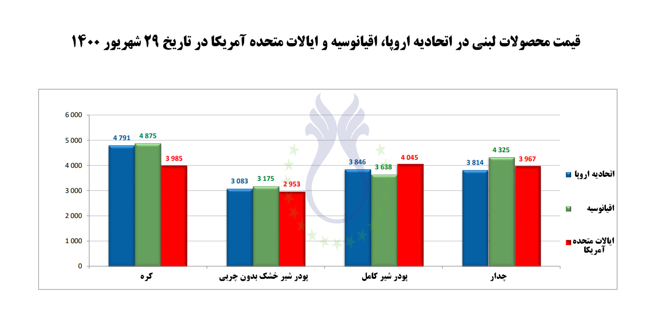 قیمت محصولات لبنی در اتحادیه اروپا، اقیانوسیه و ایالات متحده آمریکا در تاریخ 18مرداد 1400 تحولات بازار 02 شهریور 1400 قیمت ها برحسب دلار و وزن بر حسب تن میباشد. ادامه مطلب...