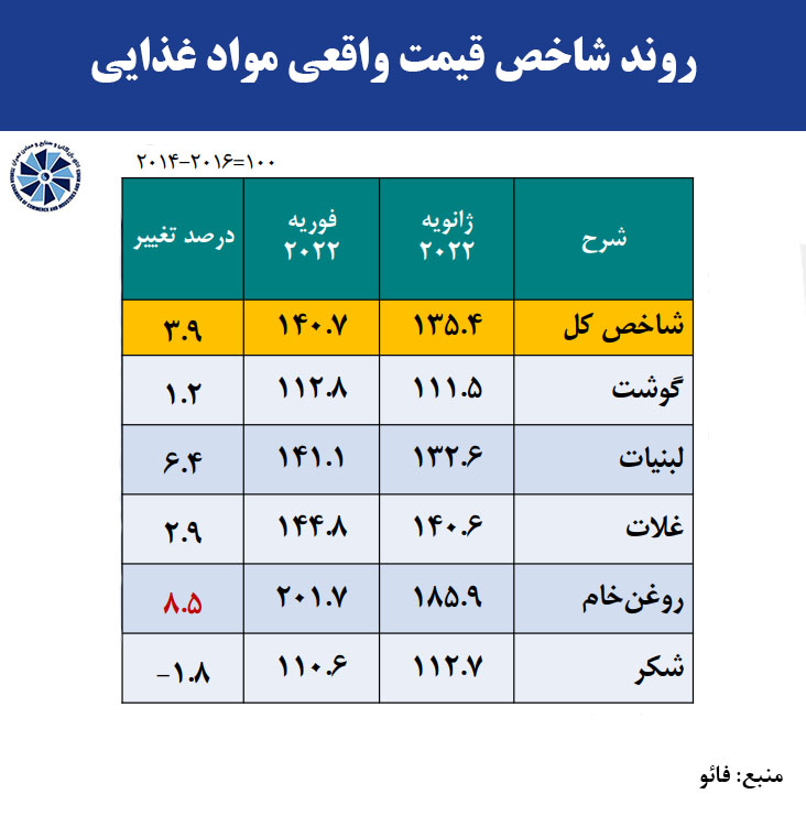 افزایش ۳.۹ درصدی شاخص کل بهای مواد غذایی در ماه فوریه 2022 و افزایش ۲۰.۷ درصدی آن نسبت به ماه مشابه سال قبل افزایش شاخص بهای کلیه گروهها باستثنای شکر در این ماه