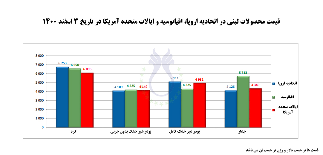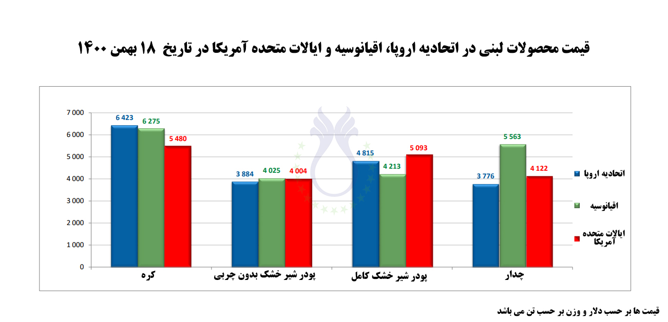 قیمت ها برحسب دلار و وزن بر حسب تن می باشد.